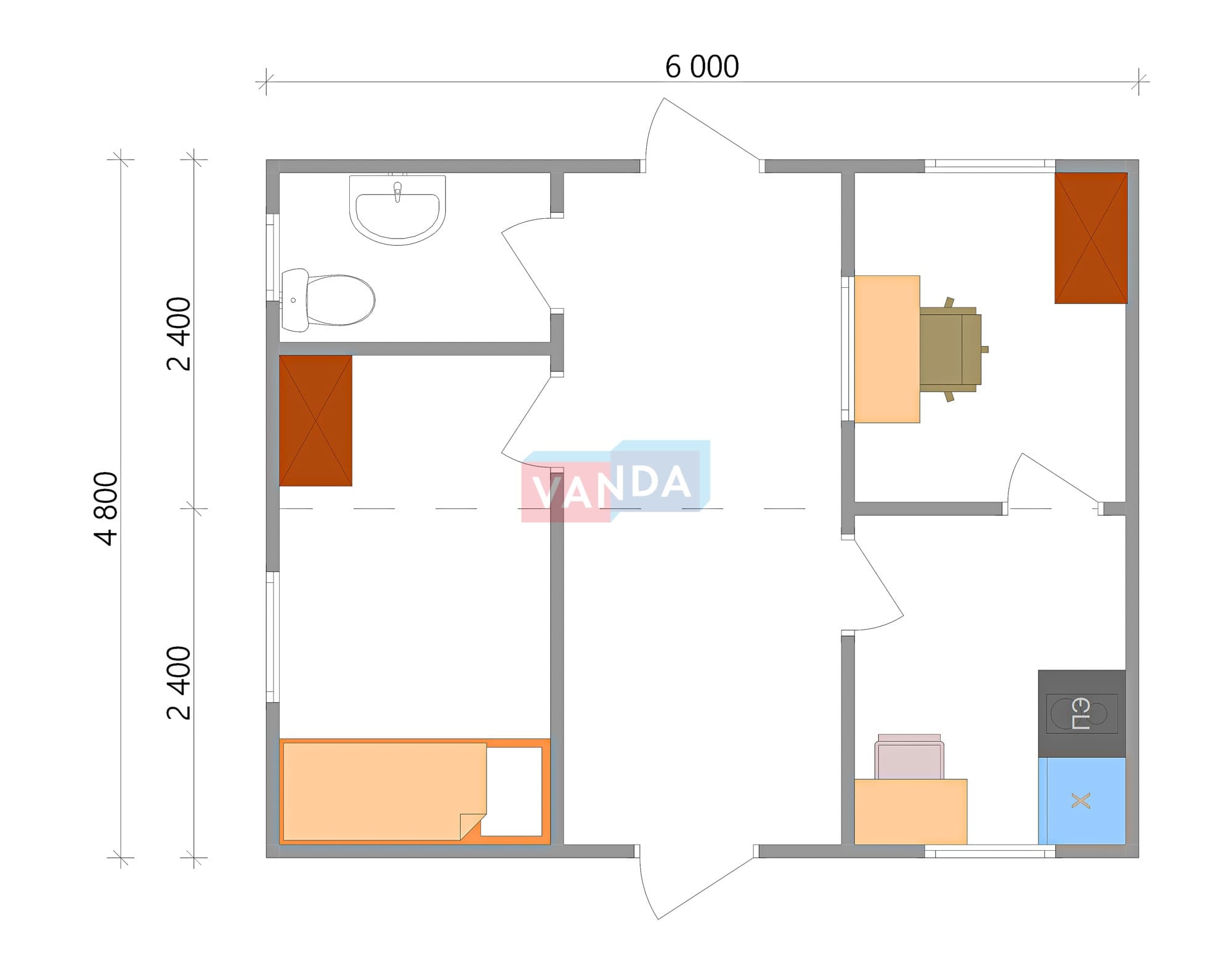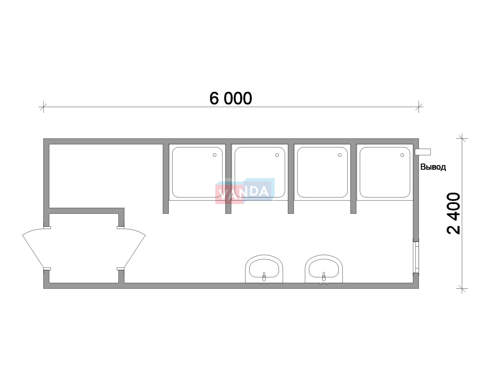 Модульная бытовка с плоской крышей 4.8х6.0 4.8х6.0 28.8 OSB 9 мм. Оцинкованный профлист 500 000 р. Уточняйте у менеджера