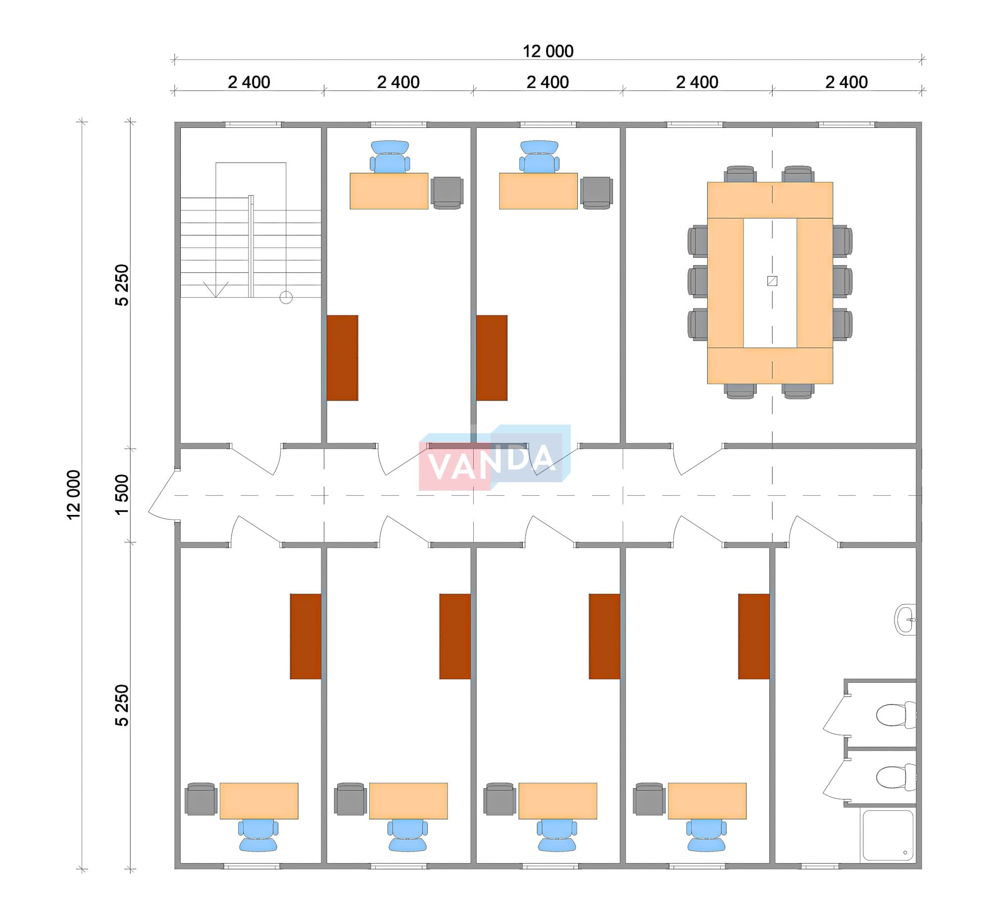 Модульная бытовка с плоской крышей 7.2x6.0 7.2x6.0 43.2 OSB 9 мм. Оцинкованный профлист 650 000 р. Уточняйте у менеджера