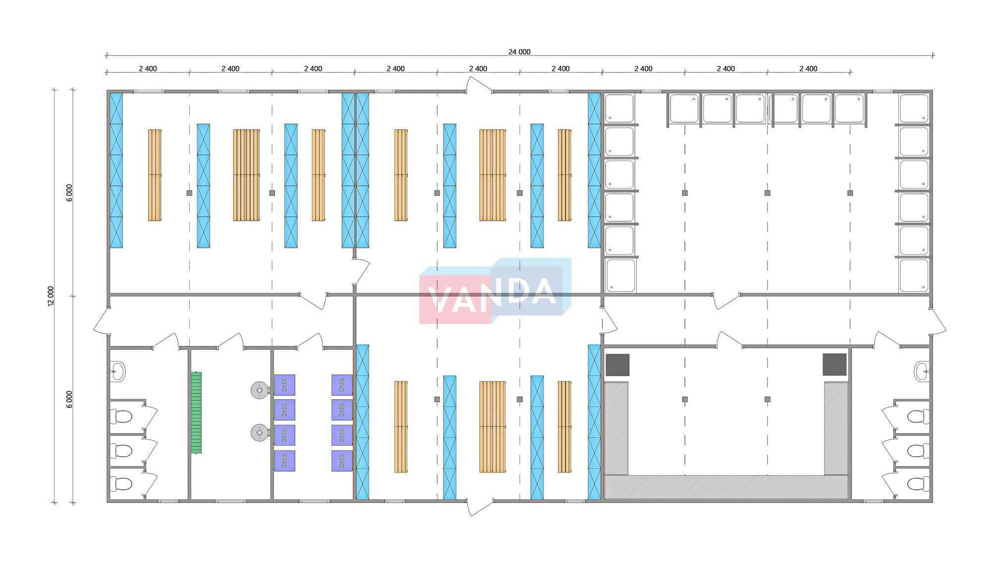 Проект вахтового посёлка 14.0х57,6 14x57.6 806.4 OSB 9 мм. Оцинкованный профлист 20 700 000 р. Уточняйте у менеджера